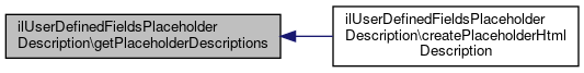 Here is the call graph for this function:| ilUserDefinedFieldsPlaceholderDescription::getPlaceholderDescriptions | ( | ) |