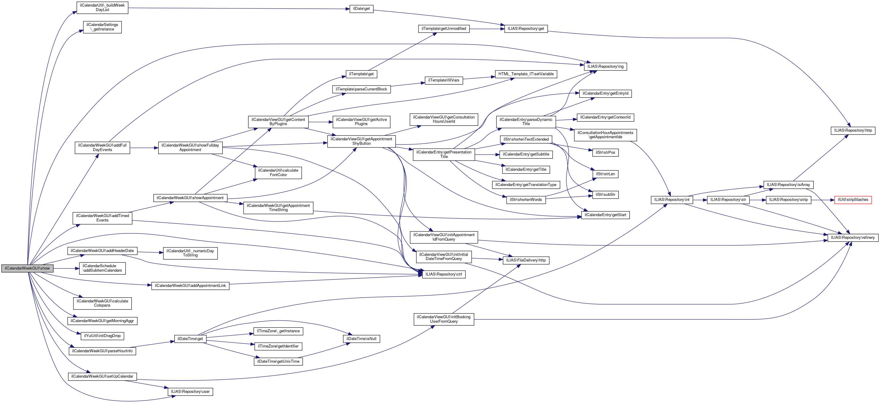 Here is the caller graph for this function:| ilCalendarWeekGUI::show | ( | ) |