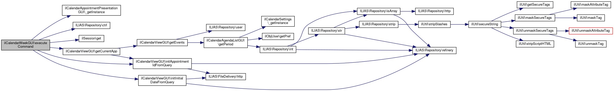 Here is the caller graph for this function:| ilCalendarWeekGUI::executeCommand | ( | ) |