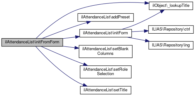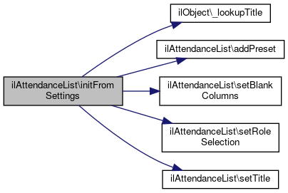Here is the call graph for this function:| ilAttendanceList::initFromSettings | ( | ) |