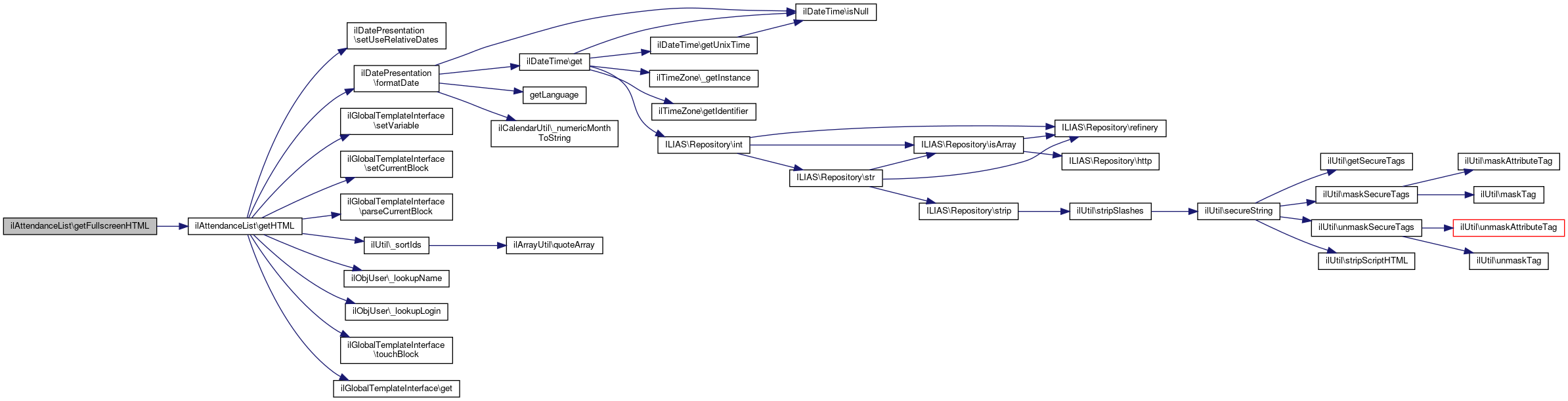 | ilAttendanceList::getFullscreenHTML | ( | ) |
