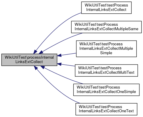 Here is the call graph for this function:| WikiUtilTest::testProcessInternalLinksExtCollect | ( | ) |