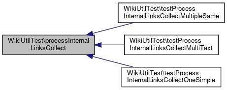 Here is the call graph for this function:| WikiUtilTest::testProcessInternalLinksCollectMultipleSame | ( | ) |
