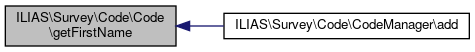 Here is the caller graph for this function:| ILIAS\Survey\Code\Code::getFirstName | ( | ) |