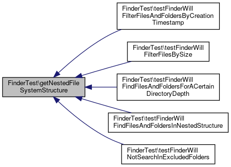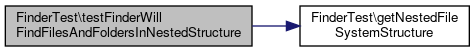 Here is the call graph for this function:| FinderTest::testFinderWillFindFilesAndFoldersInNestedStructure | ( | ) |