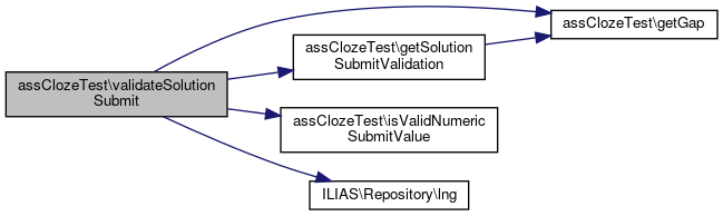 Here is the caller graph for this function:| assClozeTest::validateSolutionSubmit | ( | ) |