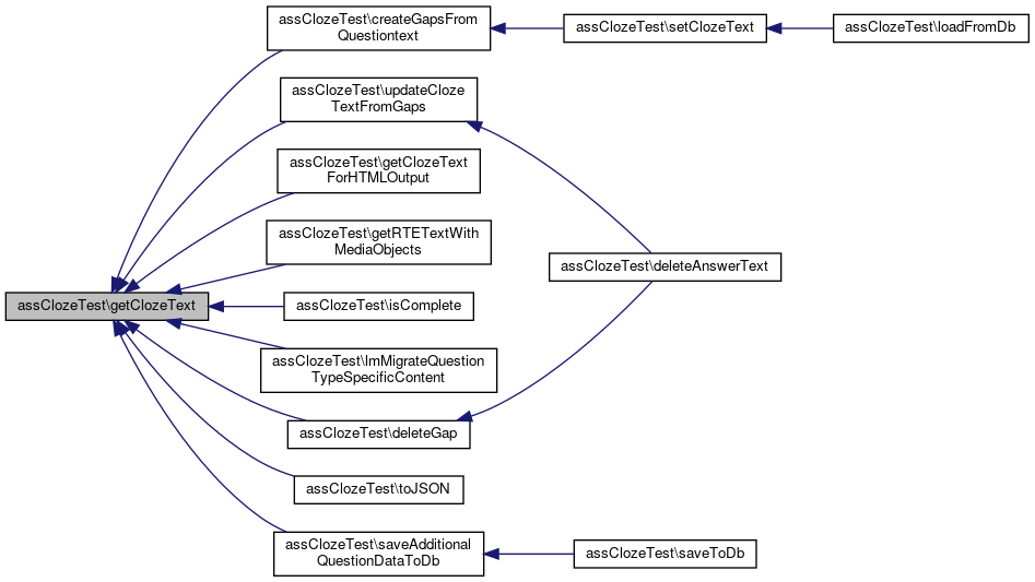 Here is the call graph for this function:| assClozeTest::$cloze_text |