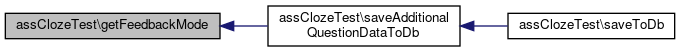 Here is the call graph for this function:| assClozeTest::setFeedbackMode | ( | $feedbackMode | ) |