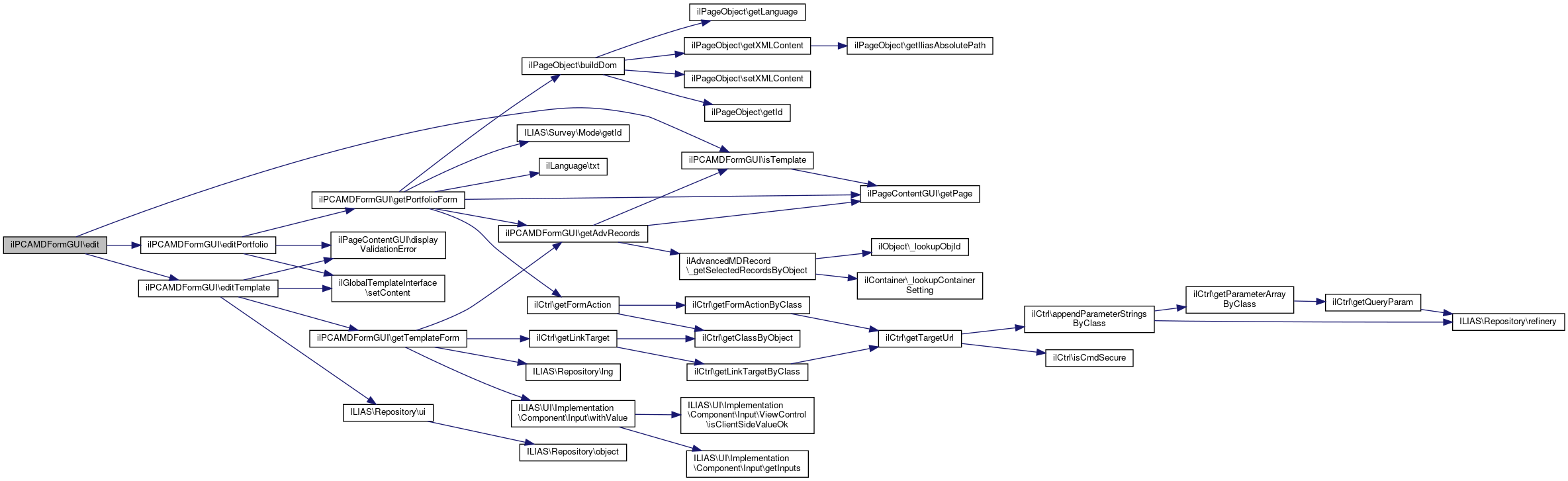 Here is the call graph for this function:| ilPCAMDFormGUI::editPortfolio | ( | ?ilPropertyFormGUI | $form = null | ) |