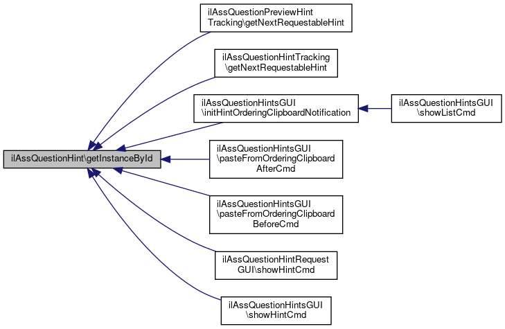 Referenced by ilAssQuestionPreviewHintTracking\getNextRequestableHint(), ilAssQuestionHintTracking\getNextRequestableHint(), ilAssQuestionHintsGUI\initHintOrderingClipboardNotification(), ilAssQuestionHintsGUI\pasteFromOrderingClipboardAfterCmd(), ilAssQuestionHintsGUI\pasteFromOrderingClipboardBeforeCmd(), ilAssQuestionHintRequestGUI\showHintCmd(), and ilAssQuestionHintsGUI\showHintCmd().