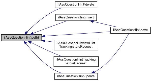Here is the caller graph for this function:| ilAssQuestionHint::getId | ( | ) |