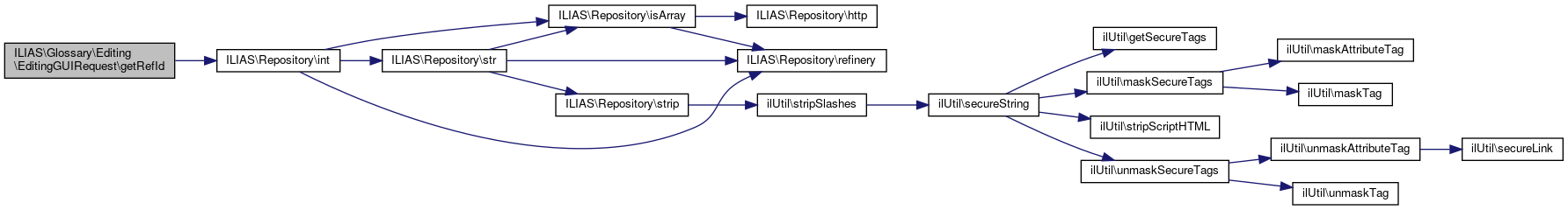 Here is the call graph for this function:| ILIAS\Glossary\Editing\EditingGUIRequest::getRefId | ( | ) |
