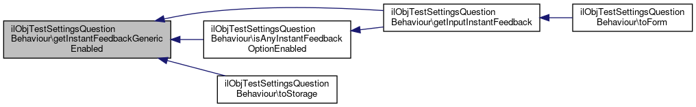 Here is the caller graph for this function:| ilObjTestSettingsQuestionBehaviour::getInstantFeedbackGenericEnabled | ( | ) |
