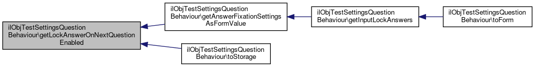 Here is the caller graph for this function:| ilObjTestSettingsQuestionBehaviour::getLockAnswerOnNextQuestionEnabled | ( | ) |
