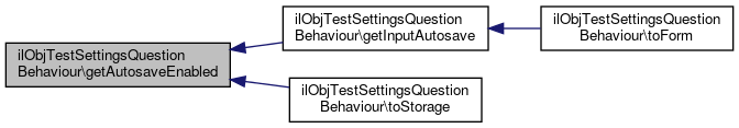 Here is the caller graph for this function:| ilObjTestSettingsQuestionBehaviour::getAutosaveEnabled | ( | ) |
