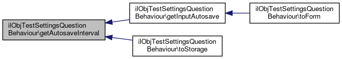 Here is the caller graph for this function:| ilObjTestSettingsQuestionBehaviour::getAutosaveInterval | ( | ) |