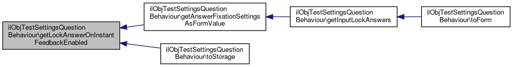 Here is the caller graph for this function:| ilObjTestSettingsQuestionBehaviour::getLockAnswerOnInstantFeedbackEnabled | ( | ) |