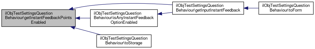 Here is the caller graph for this function:| ilObjTestSettingsQuestionBehaviour::getInstantFeedbackPointsEnabled | ( | ) |