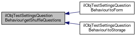 Here is the caller graph for this function:| ilObjTestSettingsQuestionBehaviour::getShuffleQuestions | ( | ) |