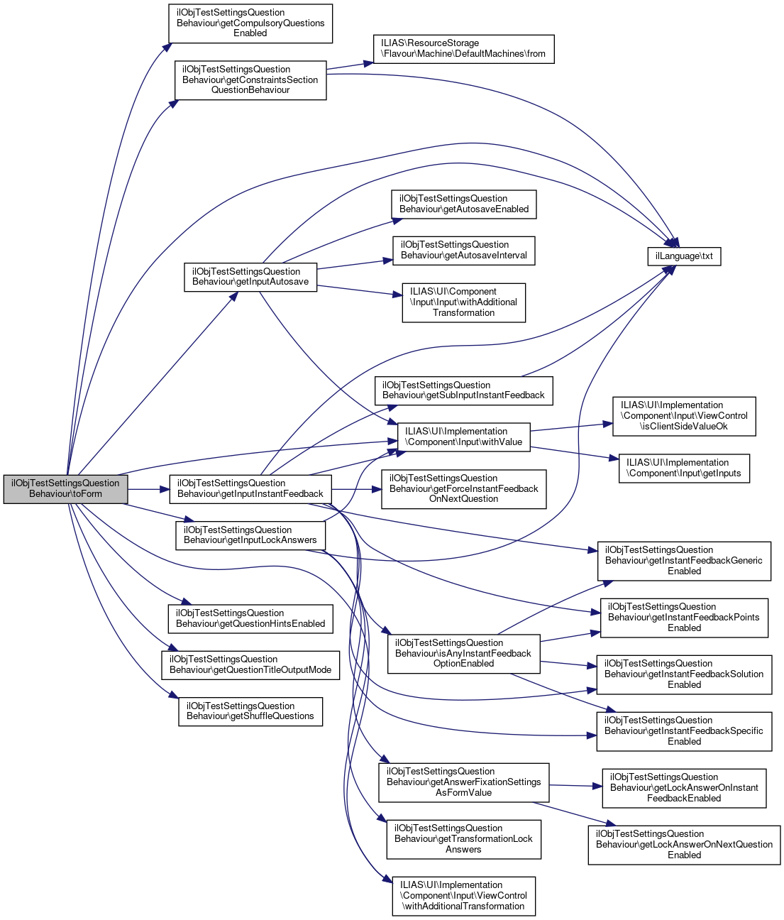 Here is the caller graph for this function:| ilObjTestSettingsQuestionBehaviour::toForm | ( | \ilLanguage | $lng, |