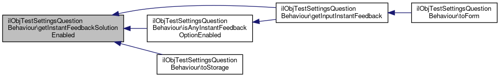 Here is the caller graph for this function:| ilObjTestSettingsQuestionBehaviour::getInstantFeedbackSolutionEnabled | ( | ) |