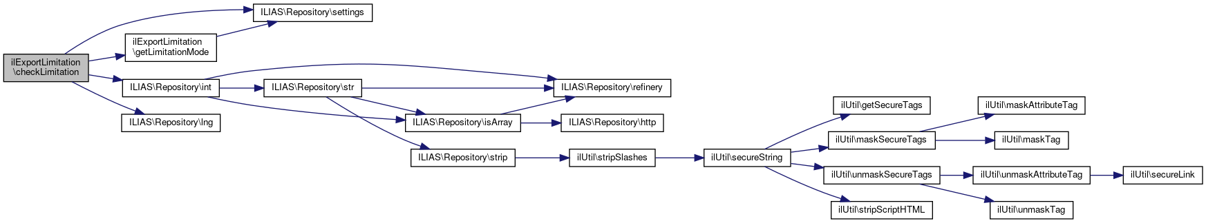 Here is the call graph for this function:| ilExportLimitation::checkLimitation | ( | int | $ref_id, |
