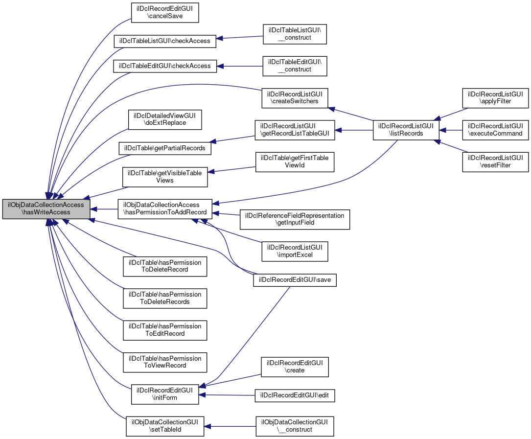 Referenced by ilDclRecordEditGUI\cancelSave(), ilDclTableListGUI\checkAccess(), ilDclTableEditGUI\checkAccess(), ilDclRecordListGUI\createSwitchers(), ilDclDetailedViewGUI\doExtReplace(), ilDclTable\getPartialRecords(), ilDclTable\getVisibleTableViews(), hasPermissionToAddRecord(), ilDclTable\hasPermissionToDeleteRecord(), ilDclTable\hasPermissionToDeleteRecords(), ilDclTable\hasPermissionToEditRecord(), ilDclTable\hasPermissionToViewRecord(), ilDclRecordEditGUI\initForm(), ilDclRecordEditGUI\save(), and ilObjDataCollectionGUI\setTableId().