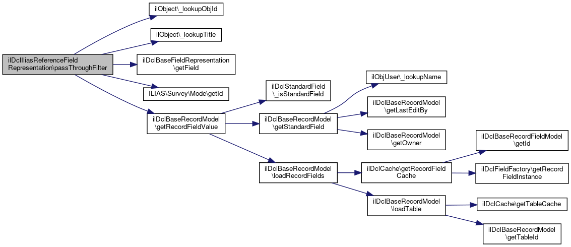 Here is the call graph for this function:| ilDclIliasReferenceFieldRepresentation::passThroughFilter | ( | ilDclBaseRecordModel | $record, |