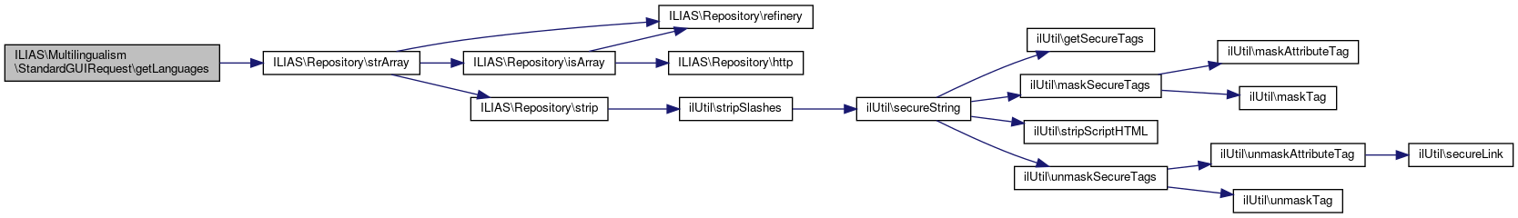 Here is the call graph for this function:| ILIAS\Multilingualism\StandardGUIRequest::getLanguages | ( | ) |