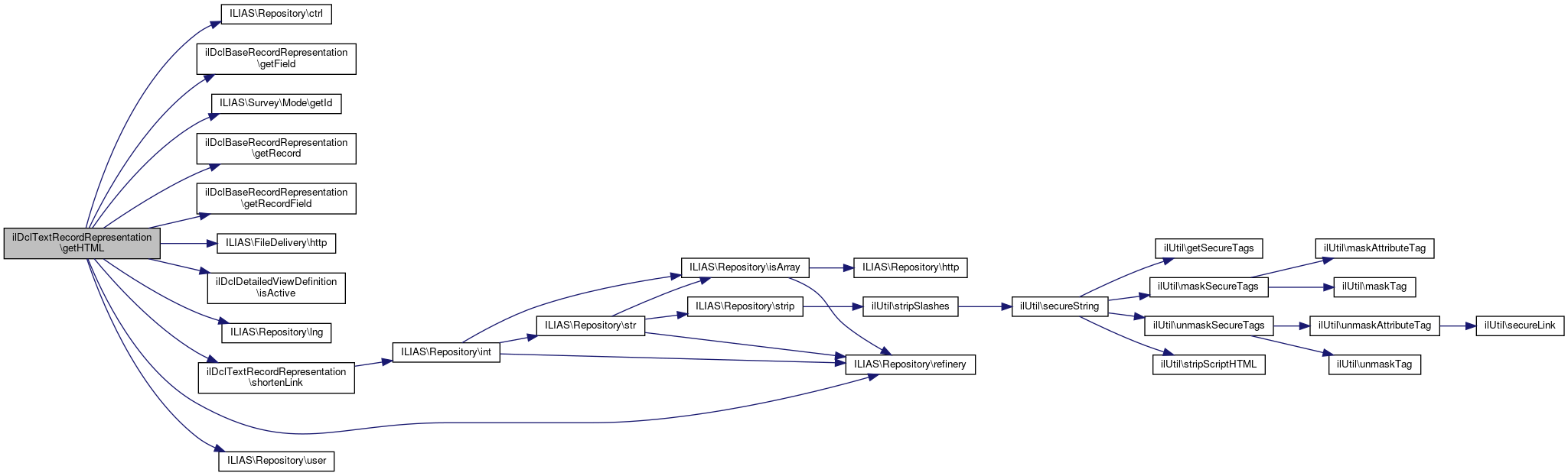 Here is the call graph for this function:| ilDclTextRecordRepresentation::getHTML | ( | bool | $link = true,  |