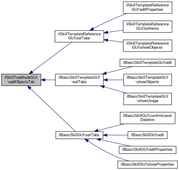 Here is the call graph for this function:| ilSkillTreeNodeGUI::addObjectsTab | ( | ilTabsGUI | $a_tabs | ) |
