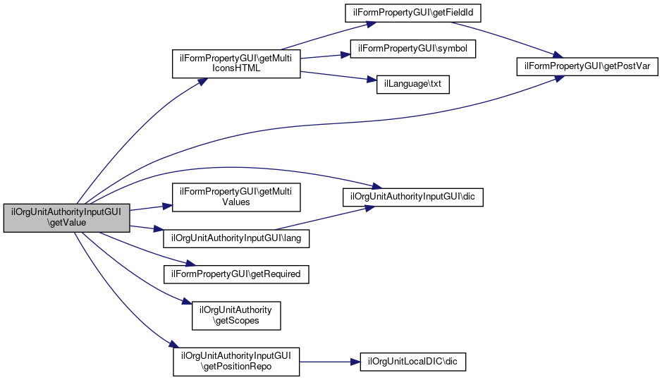 Here is the caller graph for this function:| ilOrgUnitAuthorityInputGUI::getValue | ( | ) |