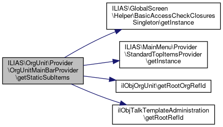 Here is the call graph for this function:| ILIAS\OrgUnit\Provider\OrgUnitMainBarProvider::getStaticSubItems | ( | ) |