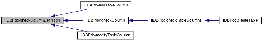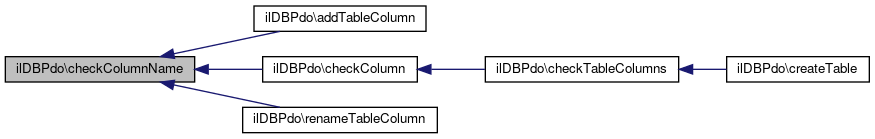 Here is the caller graph for this function:| ilDBPdo::tableColumnExists | ( | string | $table_name, |