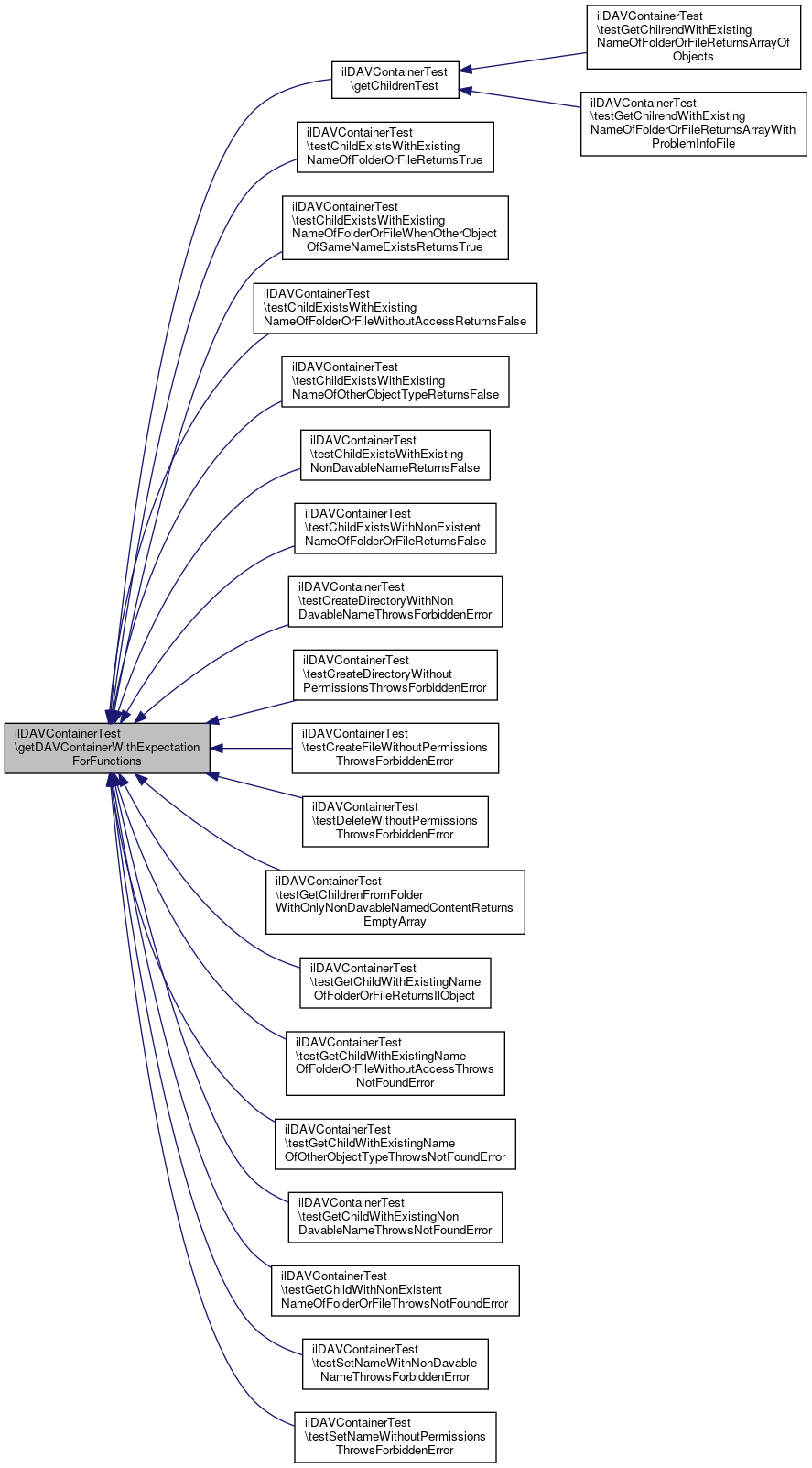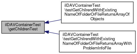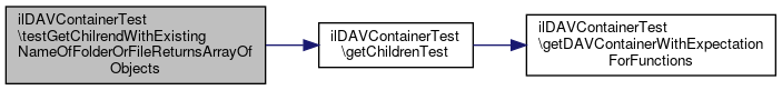 Here is the call graph for this function:| ilDAVContainerTest::testGetChilrendWithExistingNameOfFolderOrFileReturnsArrayOfObjects | ( | ) |
