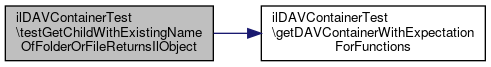 Here is the call graph for this function:| ilDAVContainerTest::testGetChildWithExistingNameOfFolderOrFileReturnsIlObject | ( | ) |