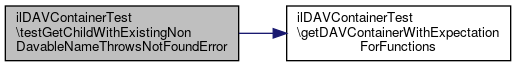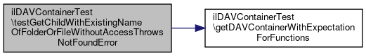 Here is the call graph for this function:| ilDAVContainerTest::testGetChildWithExistingNameOfFolderOrFileWithoutAccessThrowsNotFoundError | ( | ) |