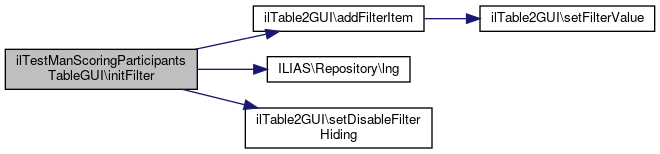 Here is the caller graph for this function:| ilTestManScoringParticipantsTableGUI::initFilter | ( | ) |