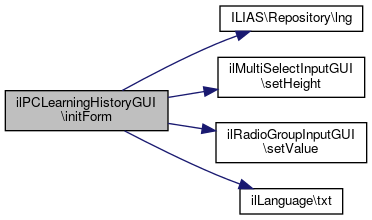 Here is the call graph for this function:| ilPCLearningHistoryGUI::edit | ( | ilPropertyFormGUI | $a_form = null | ) |
