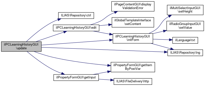 Here is the caller graph for this function:| ilPCLearningHistoryGUI::update | ( | ) |