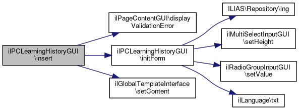 Here is the caller graph for this function:| ilPCLearningHistoryGUI::insert | ( | ilPropertyFormGUI | $a_form = null | ) |