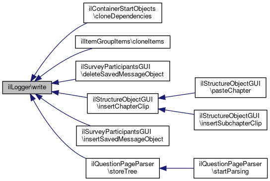 Here is the caller graph for this function:| ilLogger::write | ( | string | $message, |