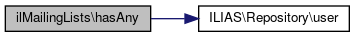 Here is the call graph for this function:| ilMailingLists::hasAny | ( | ) |