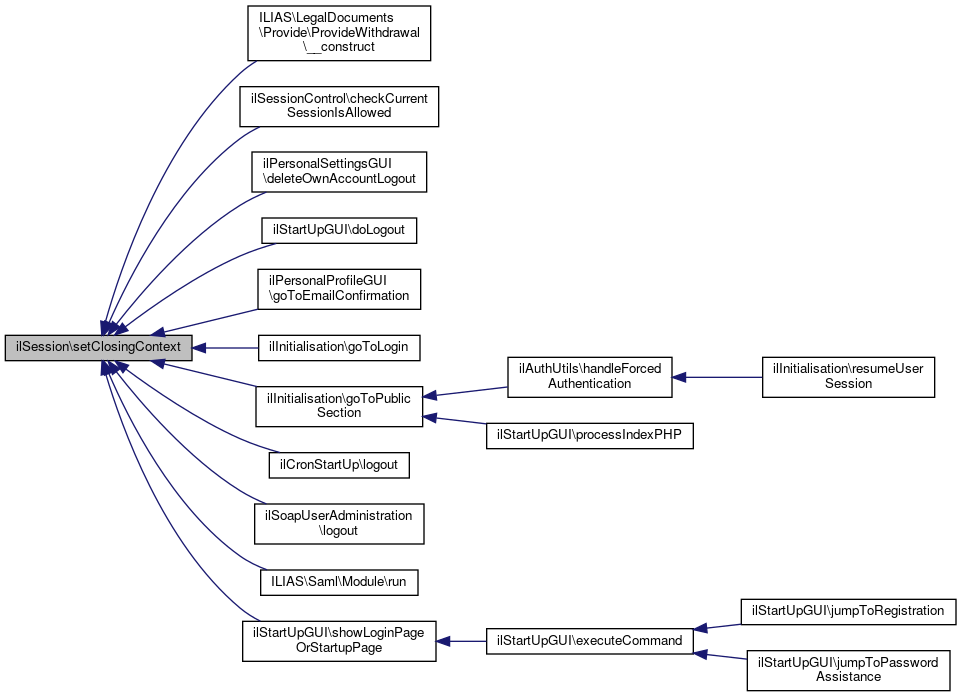 Referenced by ILIAS\LegalDocuments\Provide\ProvideWithdrawal\__construct(), ilSessionControl\checkCurrentSessionIsAllowed(), ilPersonalSettingsGUI\deleteOwnAccountLogout(), ilStartUpGUI\doLogout(), ilPersonalProfileGUI\goToEmailConfirmation(), ilInitialisation\goToLogin(), ilInitialisation\goToPublicSection(), ilCronStartUp\logout(), ilSoapUserAdministration\logout(), ILIAS\Saml\Module\run(), and ilStartUpGUI\showLoginPageOrStartupPage().