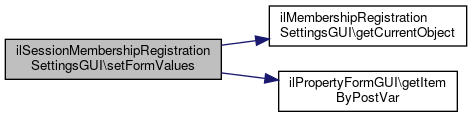 Here is the call graph for this function:| ilSessionMembershipRegistrationSettingsGUI::setFormValues | ( | ilPropertyFormGUI | $form | ) |