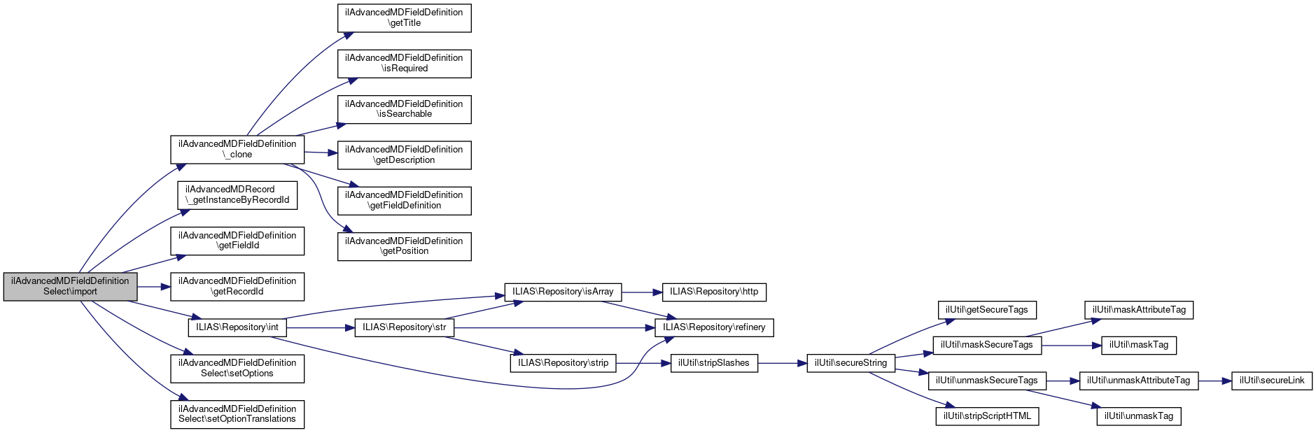 Here is the call graph for this function:| ilAdvancedMDFieldDefinitionSelect::importXMLProperty | ( | string | $a_key, |