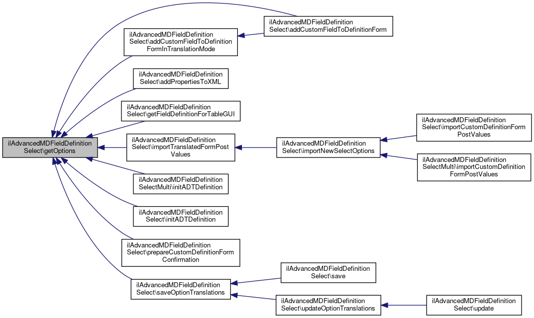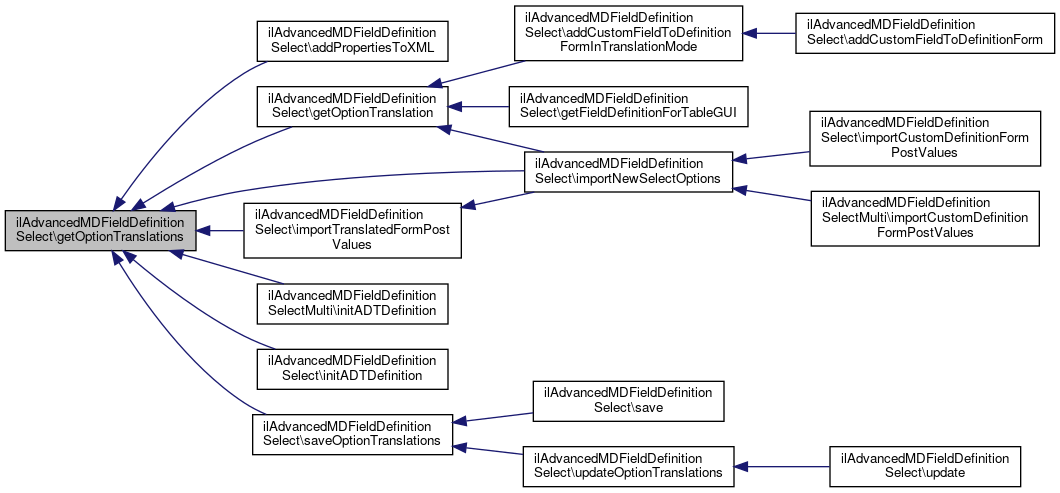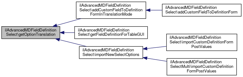 Here is the caller graph for this function:| ilAdvancedMDFieldDefinitionSelect::getOptionTranslations | ( | ) |