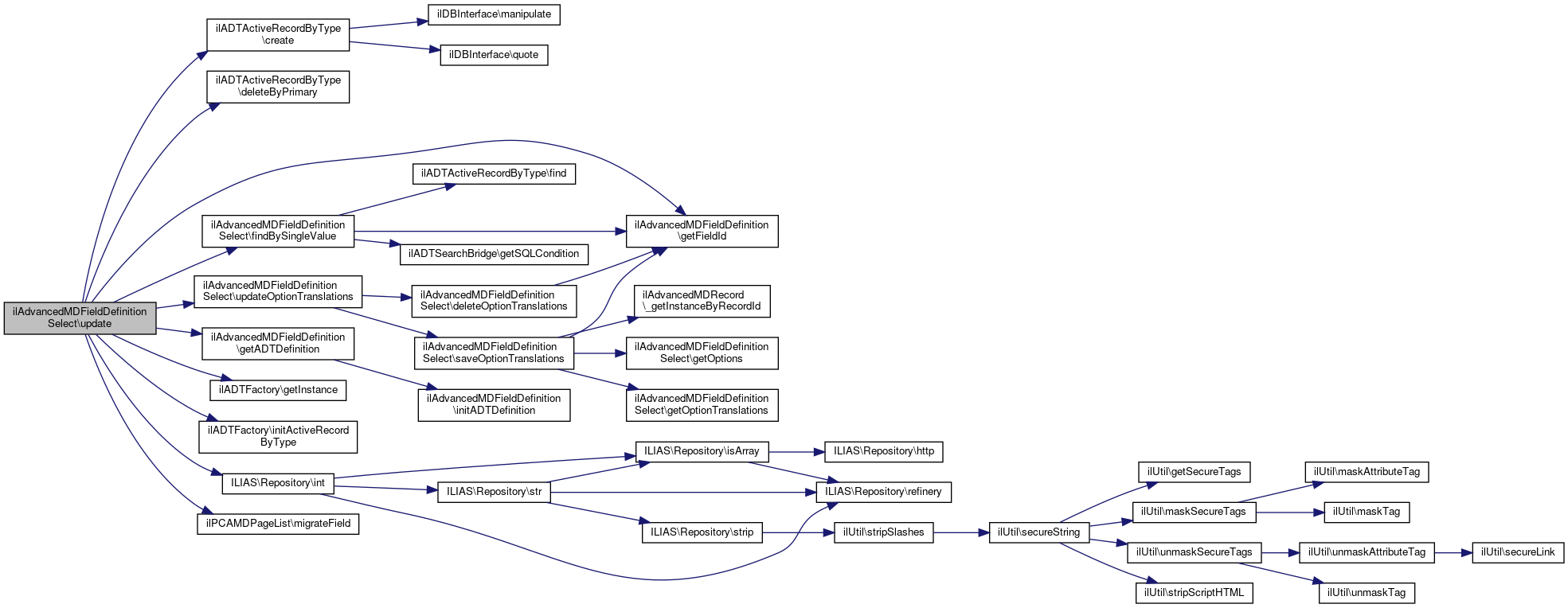 Here is the caller graph for this function:| ilAdvancedMDFieldDefinitionSelect::update | ( | ) |