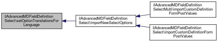 Here is the caller graph for this function:| ilAdvancedMDFieldDefinitionSelect::setOptionTranslationsForLanguage | ( | array | $translations, |