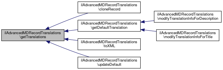 Here is the caller graph for this function:| ilAdvancedMDRecordTranslations::getTranslations | ( | ) |